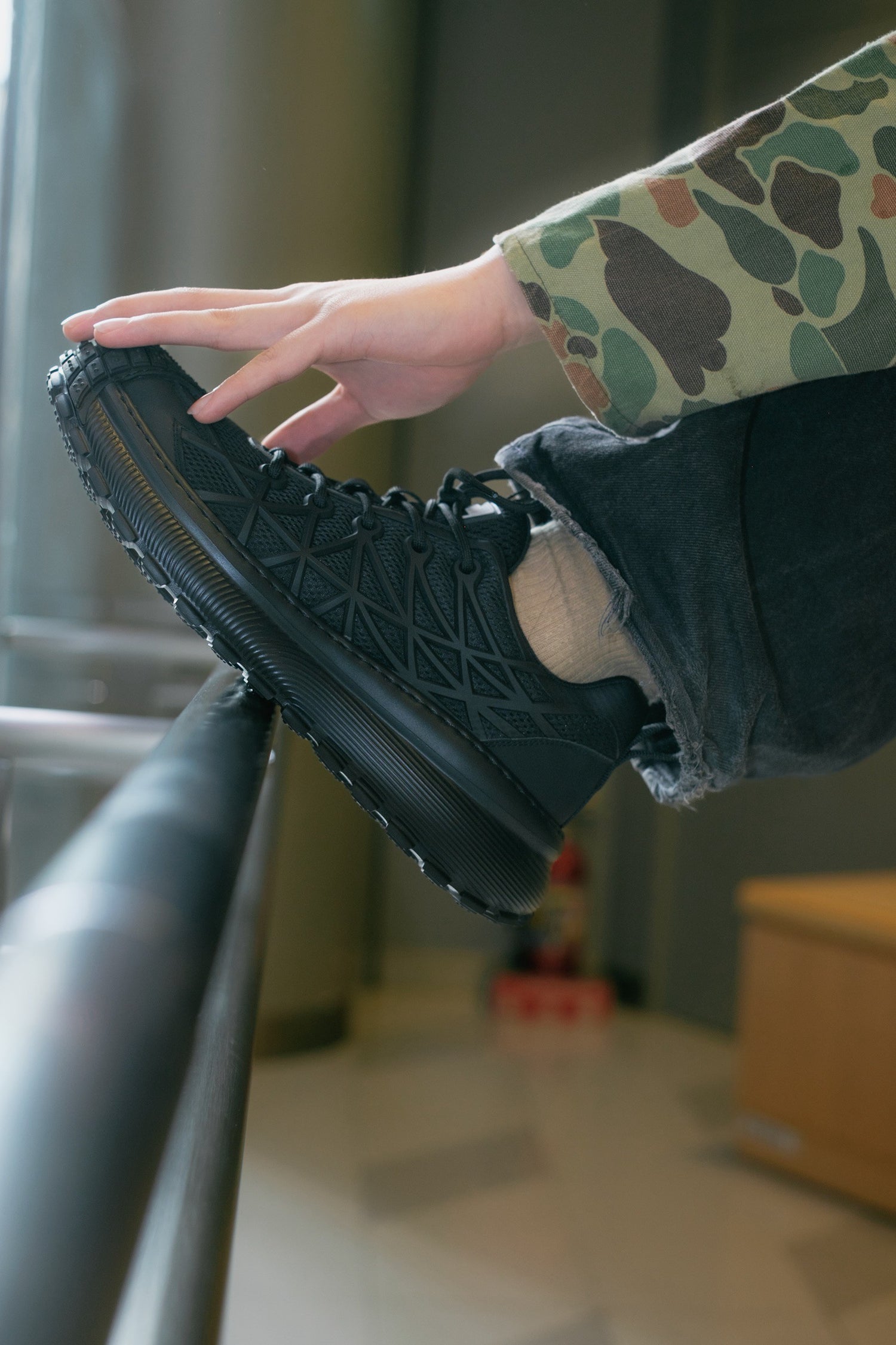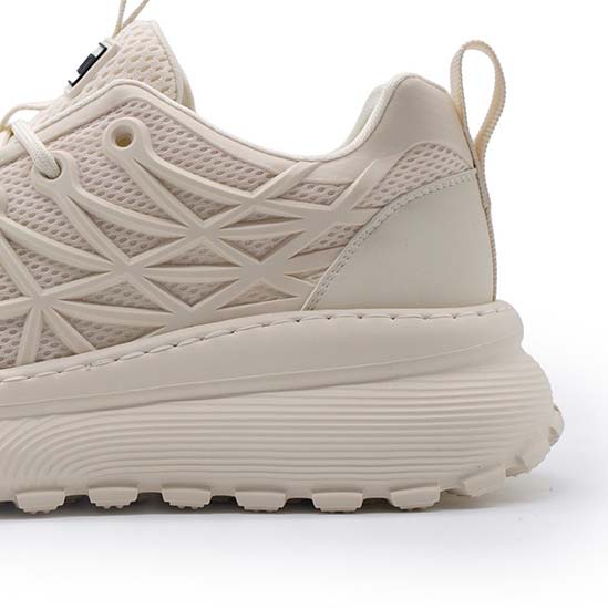 OUTLAW(アウトロー)“無法者“という名を冠した、常識の外側を歩くためのスニーカー。独自構造のラバーフレームが生み出す立体的なフォルムと、軽量メッシュの快適性。ボリュームのあるソールはタフな印象ながら、驚くほど軽く柔らかな履き心地と5cmのスタイルアップを実現。ストリートでも、フィールドでも、どんなルールにも縛られない“自由”を足元から。