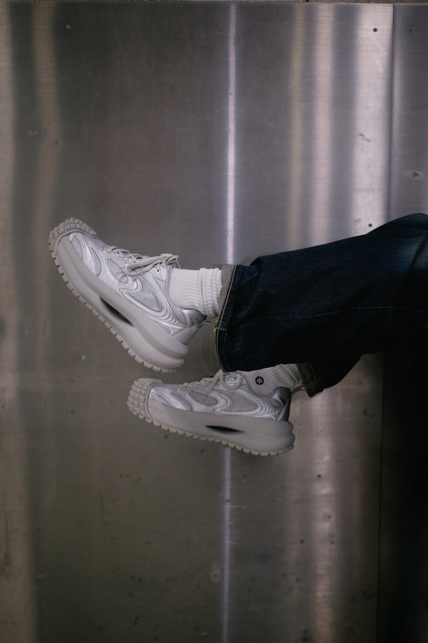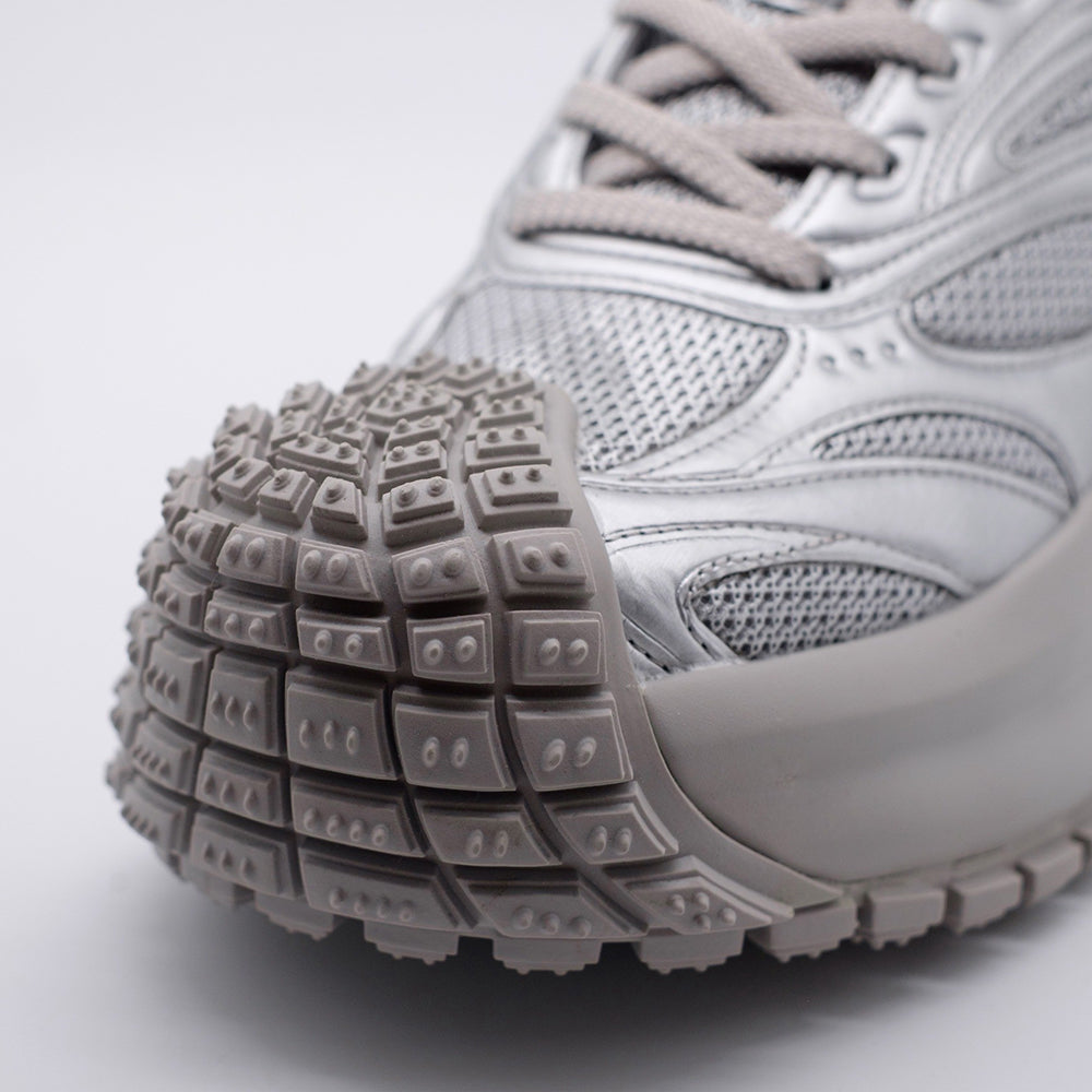 “常識に馴染まない存在“ を意味するモデル。ボリュームのあるソールとメタリックな質感が、未来的かつ無機質な存在感を放つ。