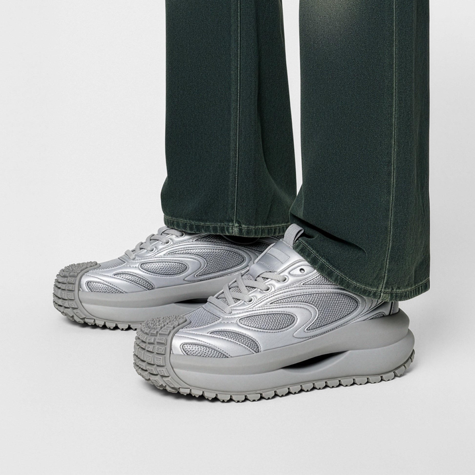 MISFIT(ミスフィット)“常識に馴染まない存在“ を意味するモデル。ボリュームのあるソールとメタリックな質感が、未来的かつ無機質な存在感を放つ。流線型のアッパーデザインと高反発ソールが生み出す軽やかな歩行感とシリーズ最高レベルの7cmのスタイルアップを実現。誰かに合わせるより、自分のスタイルを貫く“はみ出し者”のための一足。