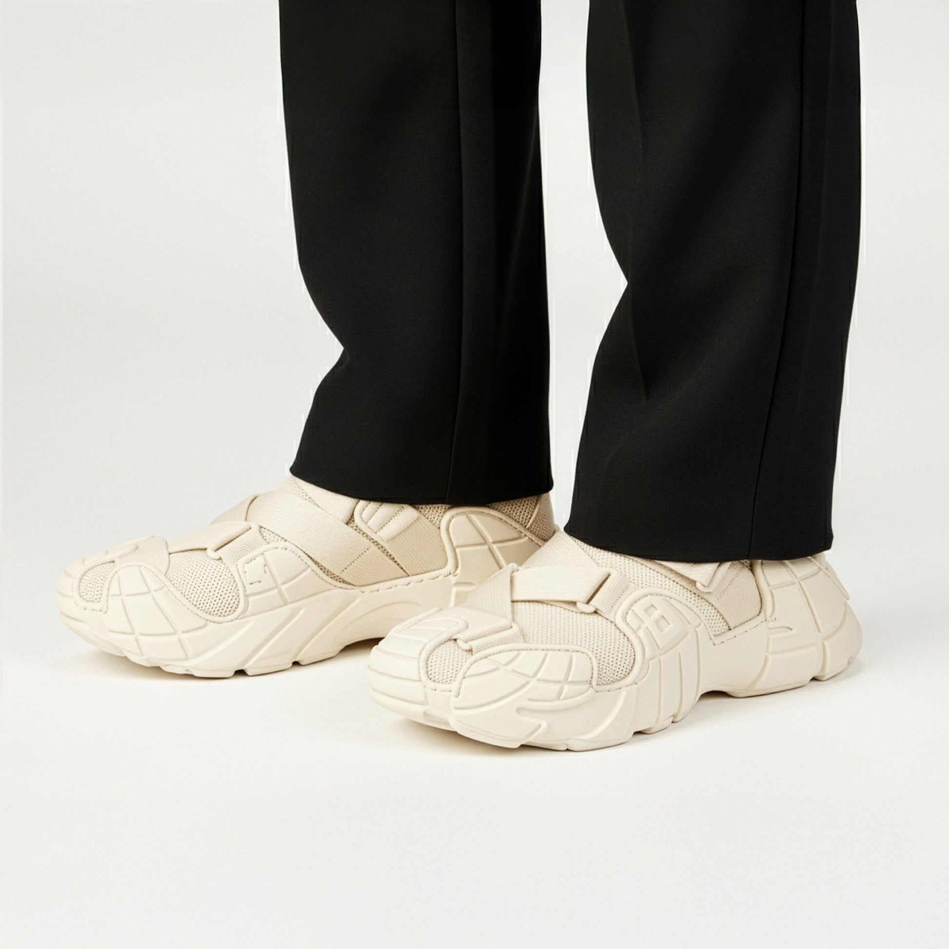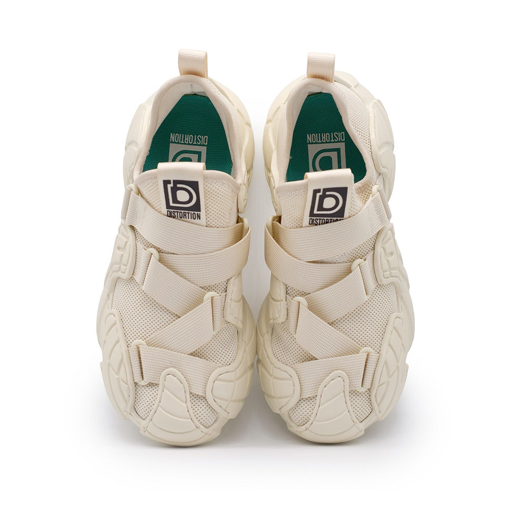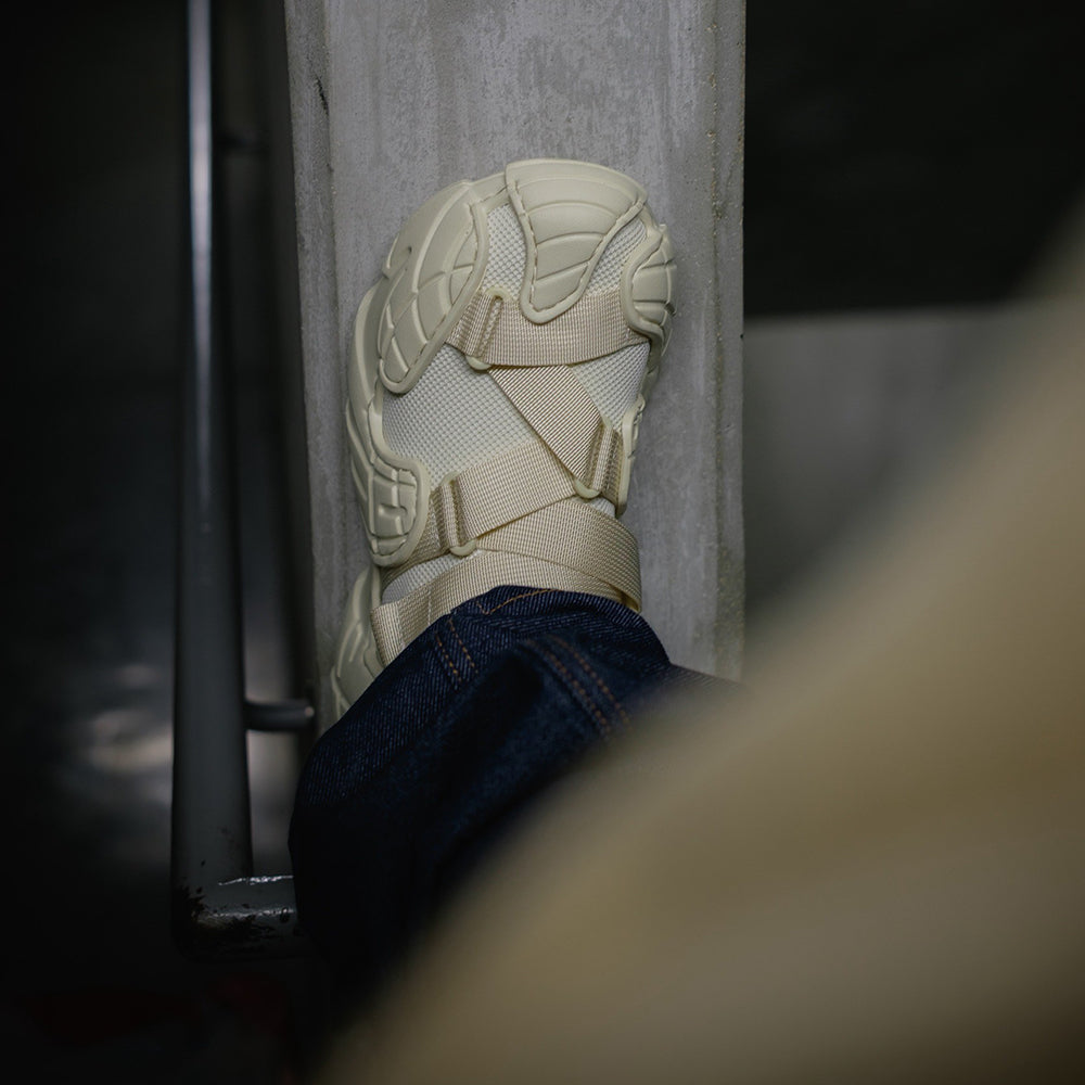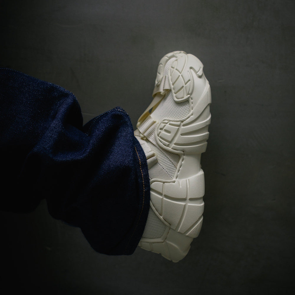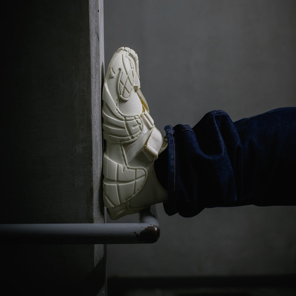 SUBVERT(サブバート)“破壊する・覆す”という意味を持つモデル。未来的な造形のソールと、軽量メッシュを組み合わせた独創的なデザイン。足を包み込むような立体構造とクロスベルト仕様にボリューム感のあるEVAソールは5cmのスタイルアップを実現し、フィット感と安定感を両立。「常識を壊す」ことで、新たな快適さとスタイルを生み出す一足。