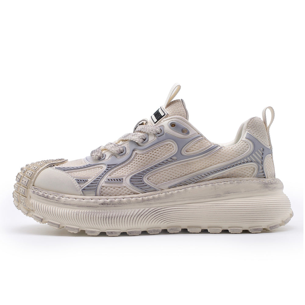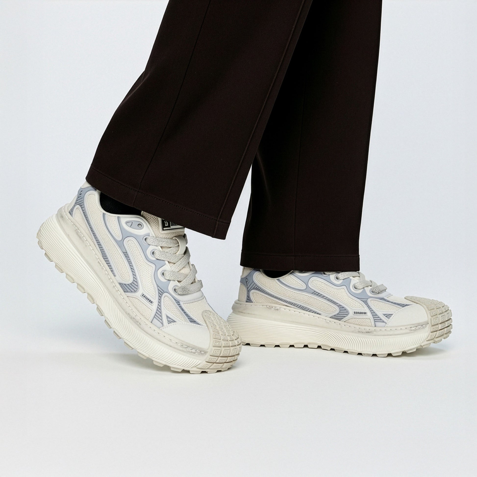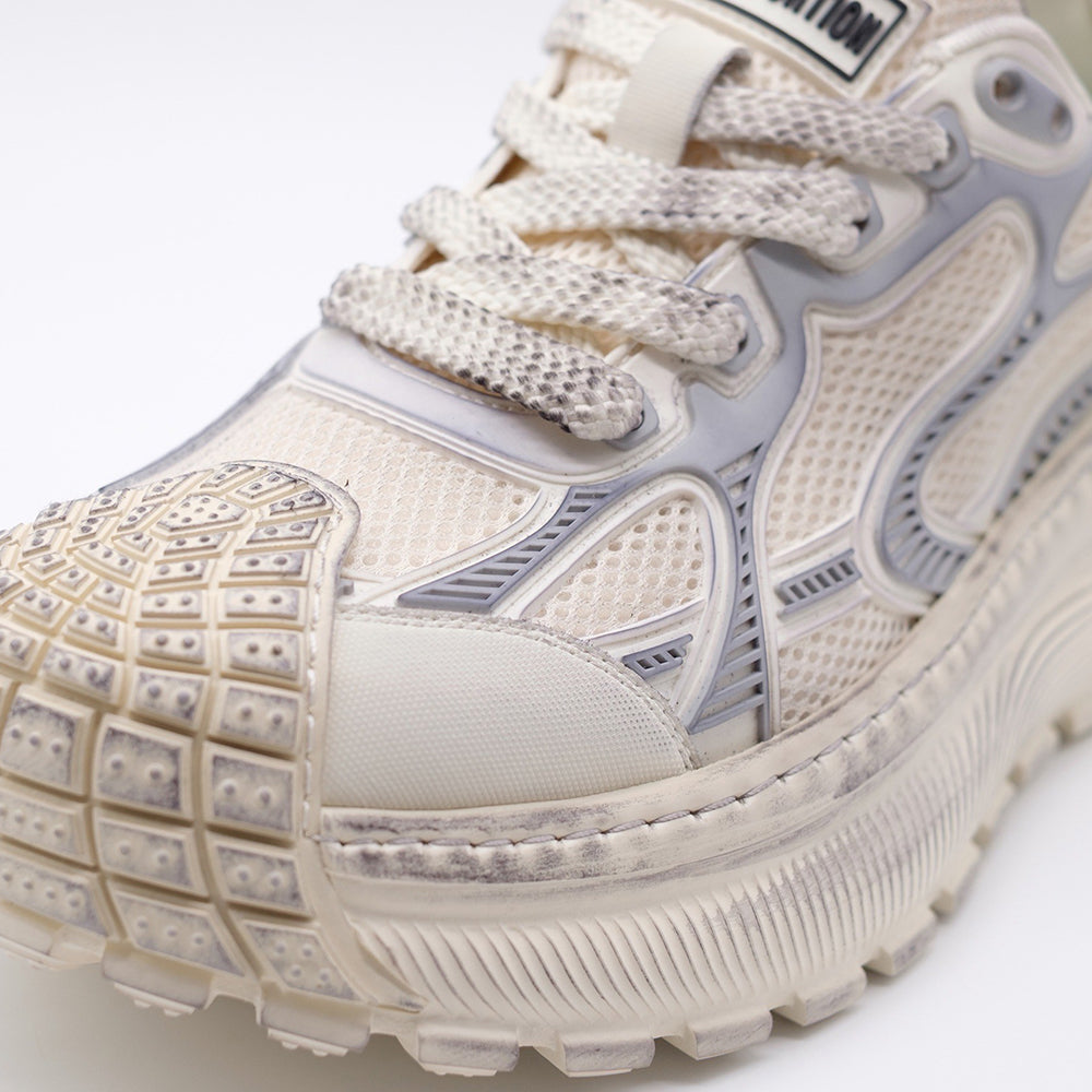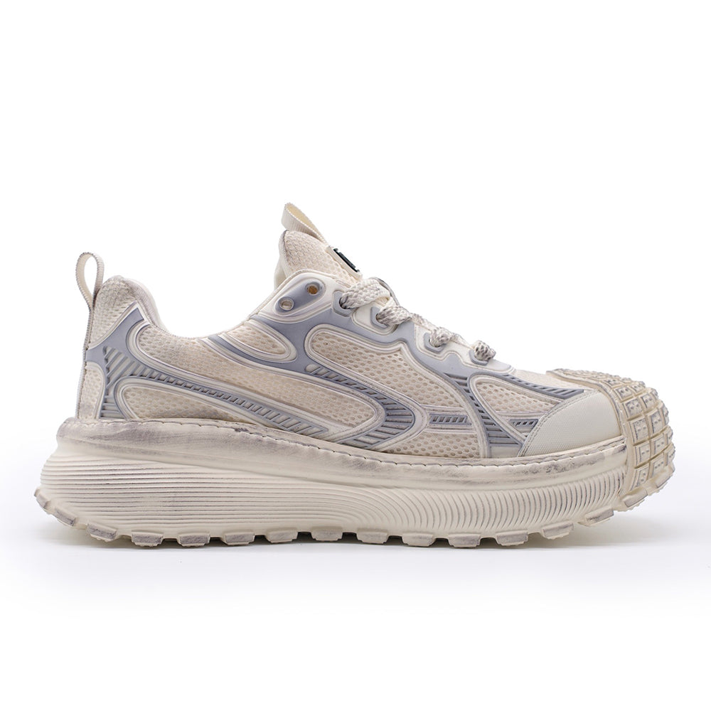 DEFIANT(ディファイアント)”反抗的な、挑戦的な”を意味する名の通り、アウトドアギアを思わせる圧倒的なボリュームソールと、構築的なアッパー。トレイル要素と都会的デザインを融合に5cmのスタイルアップを実現と存在感ある足元を演出。挑戦を恐れないスピリットを体現する、シリーズの最前線モデル。